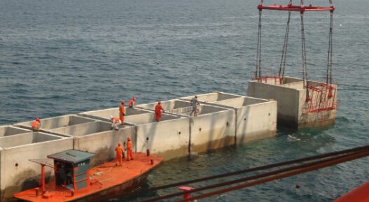 Hoisting the caisson at"Sun-moon"island